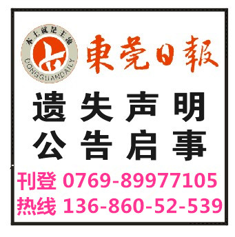 東莞日報登報丨遺失聲明丨公告啟事丨東莞登報平臺官網
