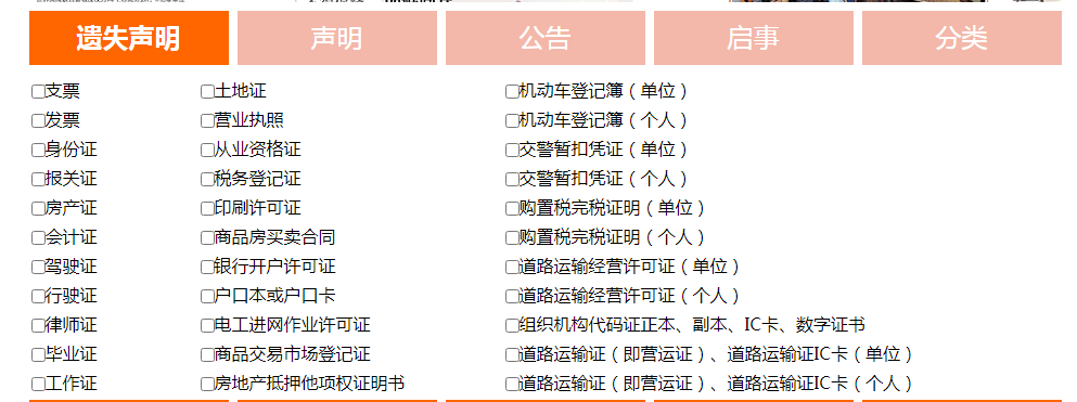 第一步:選擇遺失證件類別,根據模板填寫提交、找不到對應的證件在空白模板填寫,提交聯系方式,收件地址