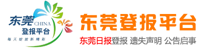 東莞日報登報平臺是:東莞日報網上廣告預訂平臺,目前可以在線辦理【省級報刊:廣州日報、南方日報、羊城晚報、南方都市報、新快報,市級報刊:東莞日報】遺失聲明、公告啟事、工商廣告、分類廣告、批前公示、拍賣公告、協會公告、商行公告、法院公告、招標公告等廣告業務,方便快捷、價格優惠!東莞企業盡享網上優惠與便利,廣受東莞企業登報用戶歡迎的網上辦理平臺。
